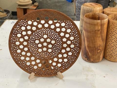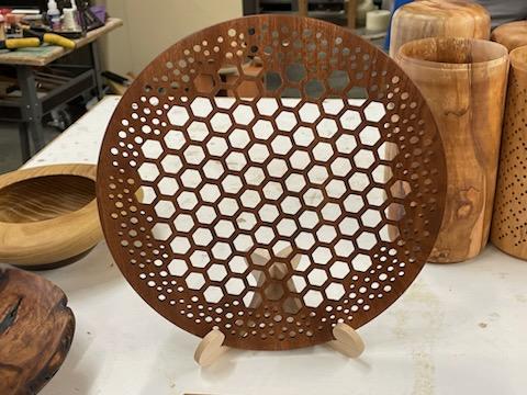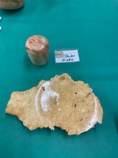 Damon performed a demonstration on turning one of his signature fish. This was a demonstration on turning at very high speeds. He went into a detail explanation on the why of turning at the high speed in order to aid the turning tool to traverse the gap on a square or flat piece of wood. He also showed how to use a vacuum chuck as a jam chuck. Very unique turning. Enjoy the below pics for the Show and Tell.