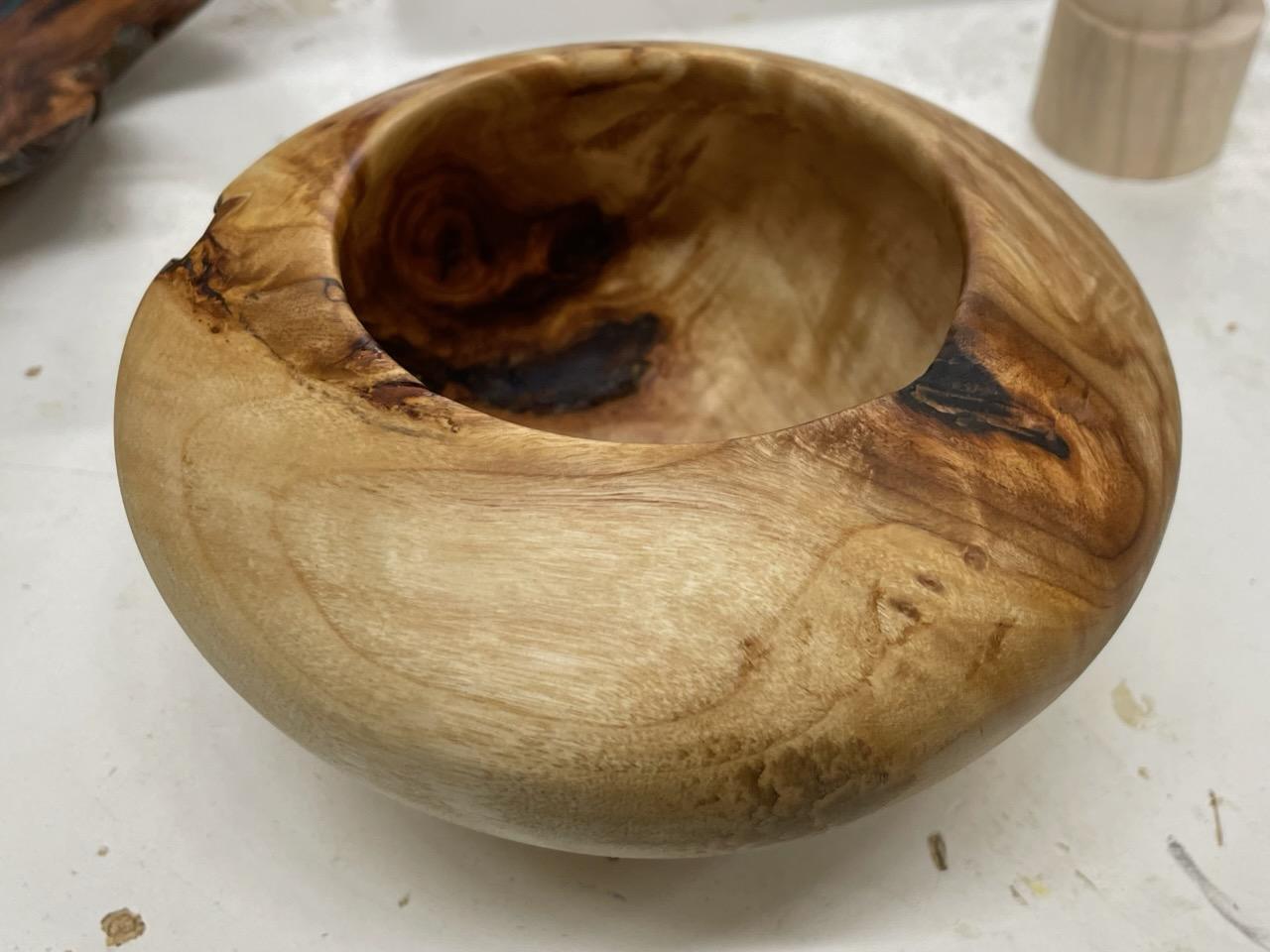 June’s meeting entailed multiple demonstrations by Matt Monaco. These demonstrations were particularly interesting since he basically turned a top and bowl using the skew tool. His skews entail a special rounded grind that really made the demonstrations fascinating. Thanks Matt. The following pieces were on display by our club turners.